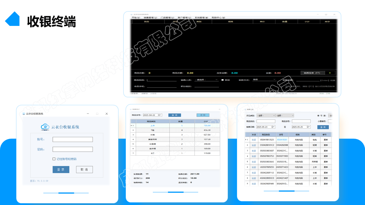 智慧收银系统,适用于服装店、鞋包店单体经营或连锁经营,云服务模式,部署快捷,使用方便。